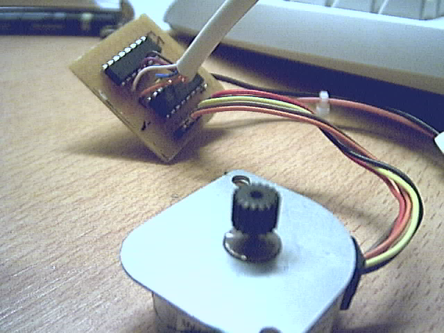 This is a parallel port interface, software oriented, for stepper motors. It can drives two motors, with 500mA output current per phase. As parport cannot directly give this power, we use two ULN2003 darlington array of 7 pairs (we need 8 pairs...). What you only need is :