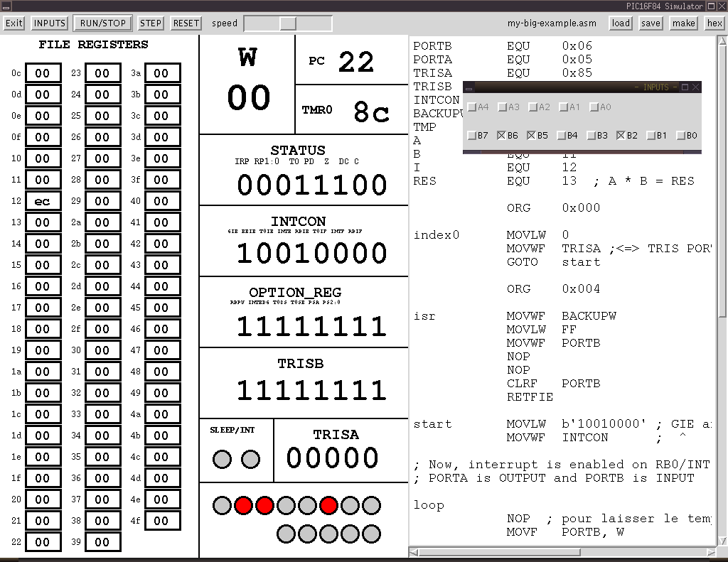 Warning: Registers number in the real MCU are not 256 ! To produce real code, you need to stay between 0x0c and 0x50.